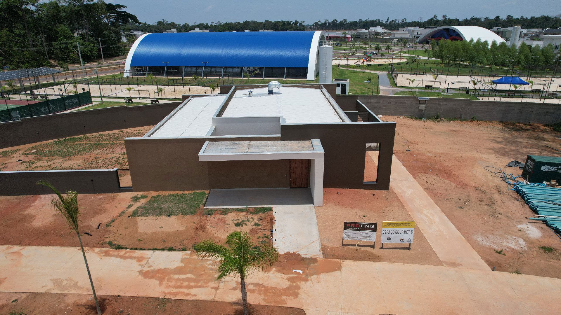 Pórtico de entrada, prédio operacional, quadra de peteca e quadras de espiribol despontam no projeto com 94% concluídos.