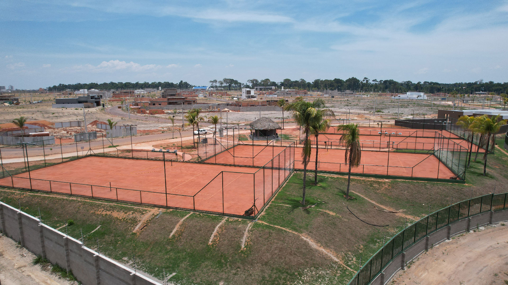 As seis quadras de tênis estão 98% completas. Já a poliesportiva adulto e a infantil estão em 95% do programa de obras.